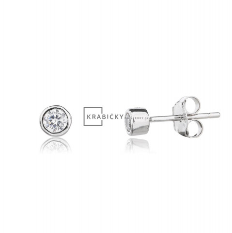 Stříbrné náušnice s bílým zirkonem, puzeta, 0,68 g, šperk je rhodiován,