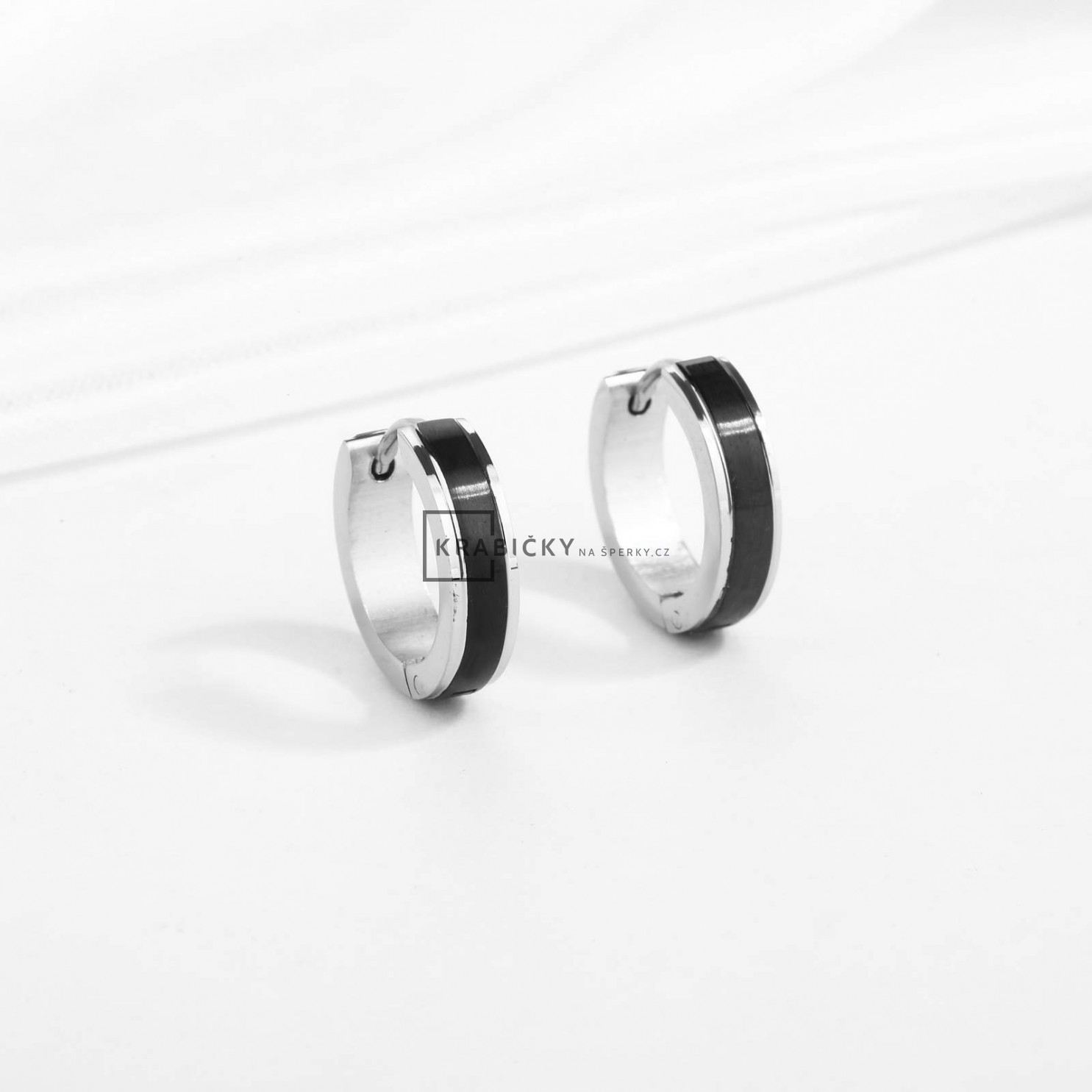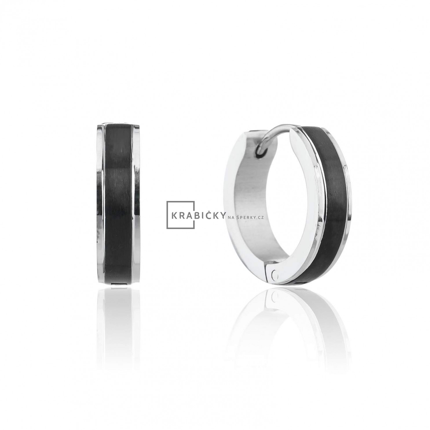 Náušnice z oceli s černým zirkonem, kruhy, 4,40 g