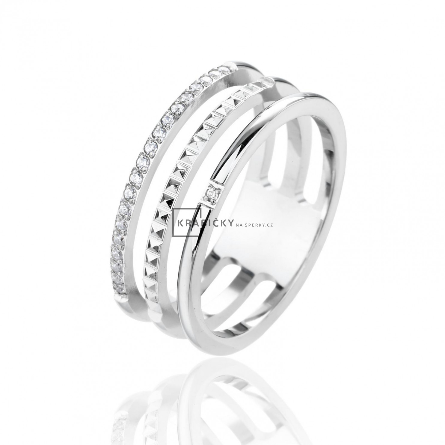 Ocelový prsten s bílým zirkonem, velikost: 53, 3,4g