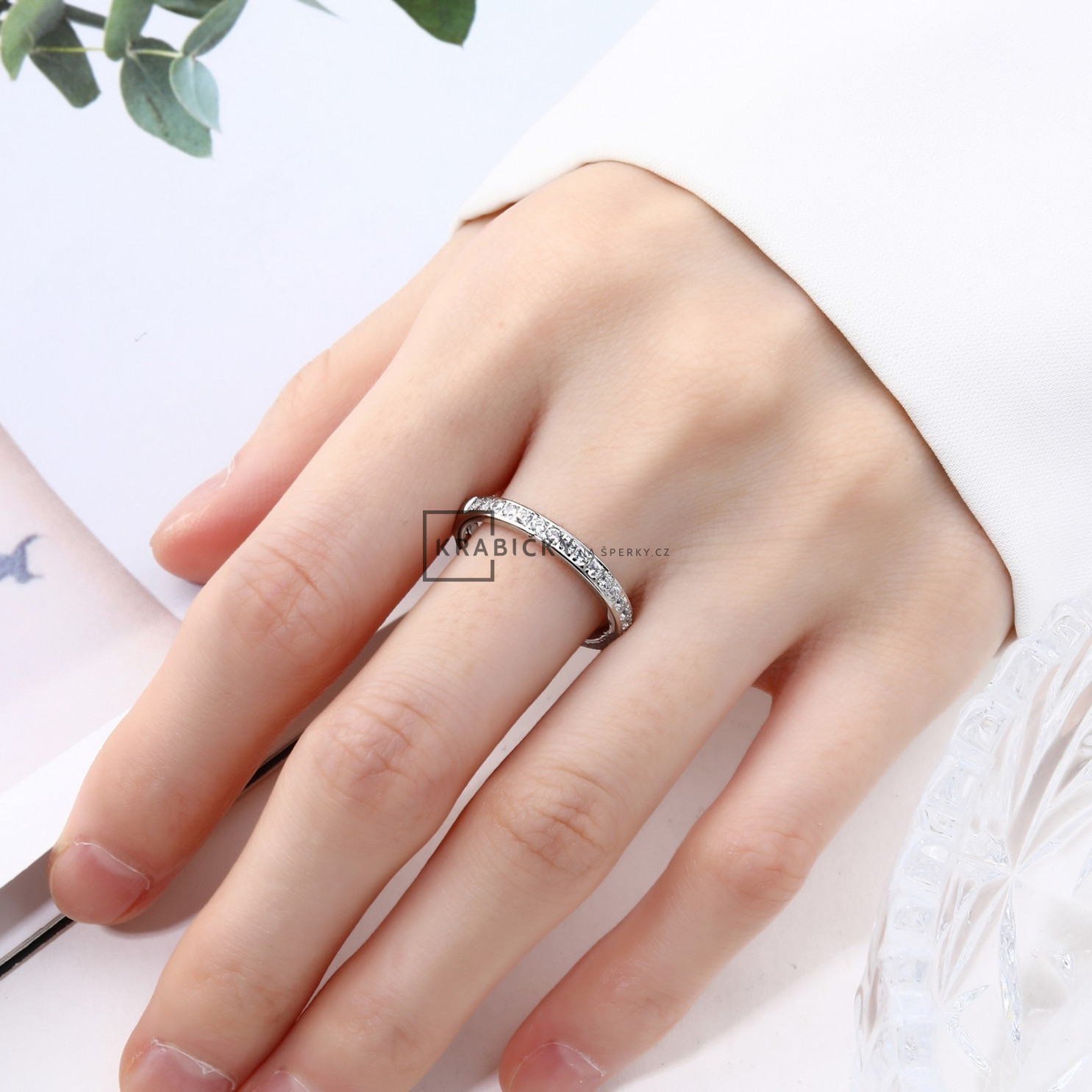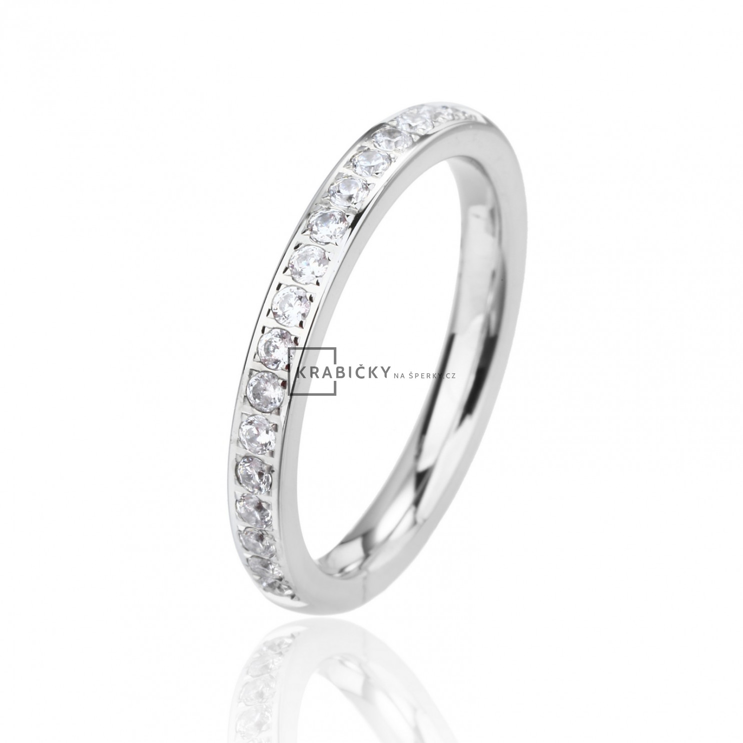 Ocelový prsten s bílým zirkonem, velikost: 49, 1,42g