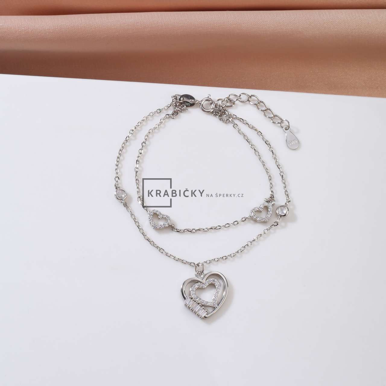 Stříbrný náramek s bílým kamenem, , 17 - 20 cm, 3,62 g