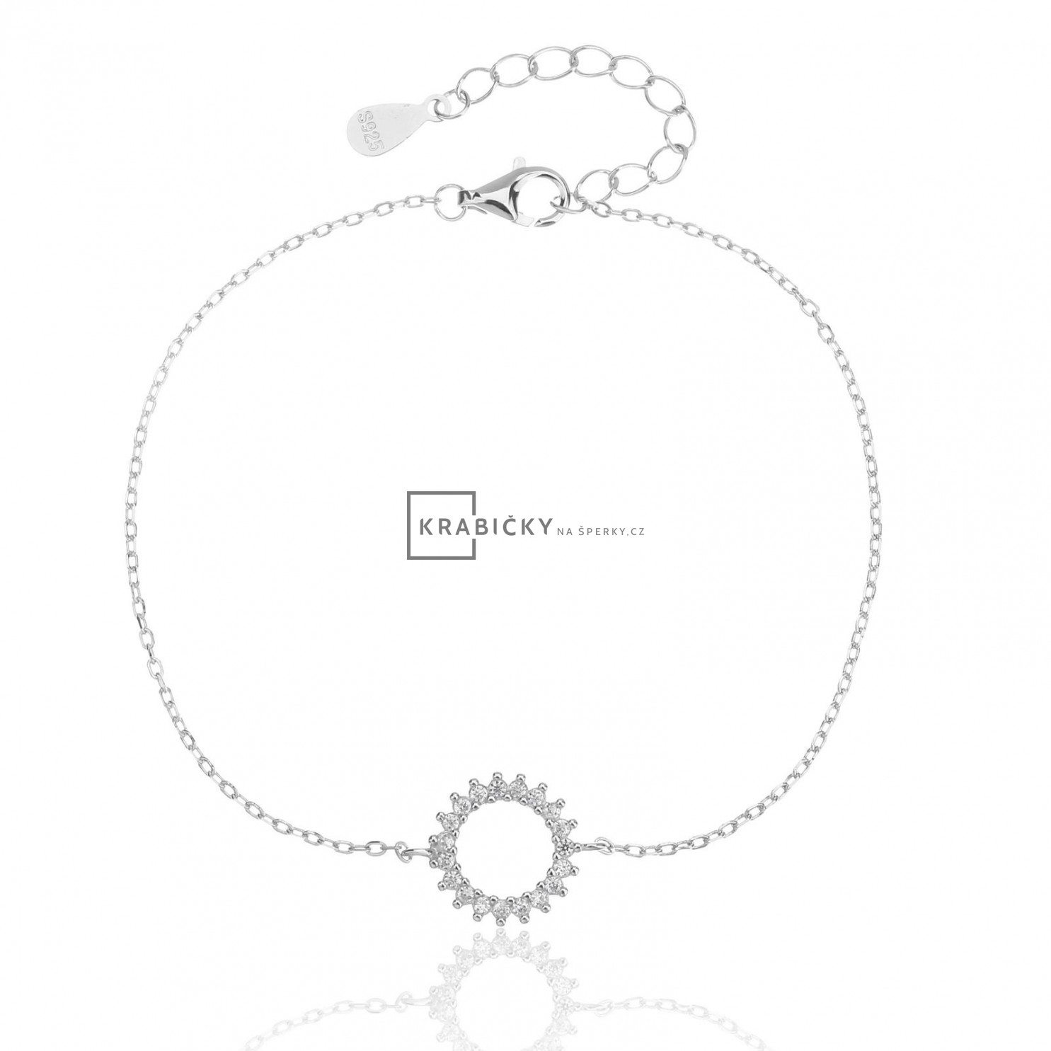Stříbrný náramek s bílým zirkonem, , 17 - 20 cm, 1,35 g, šperk je rhodiován,