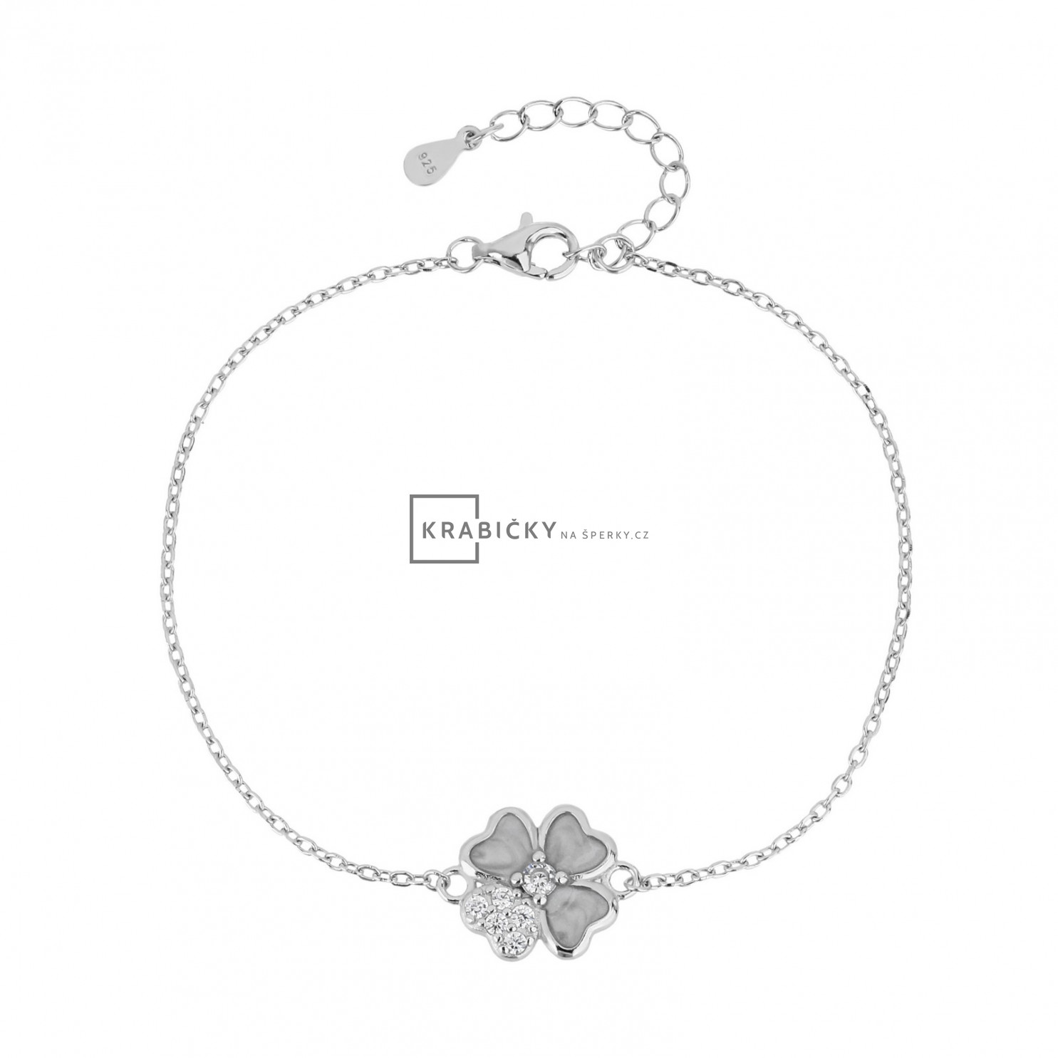 Stříbrný náramek s bílým zirkonem, anker, 17 - 20 cm, 2,51g, šperk je rhodiován,
