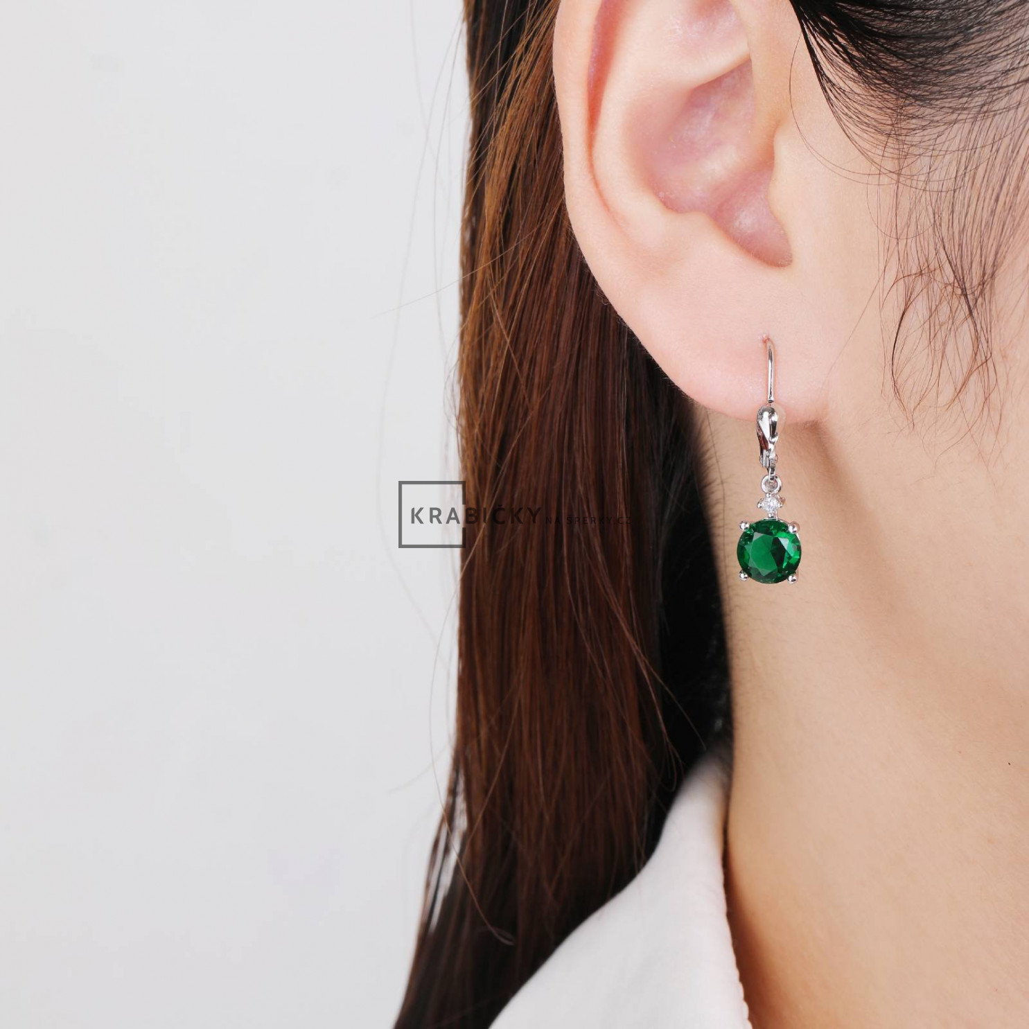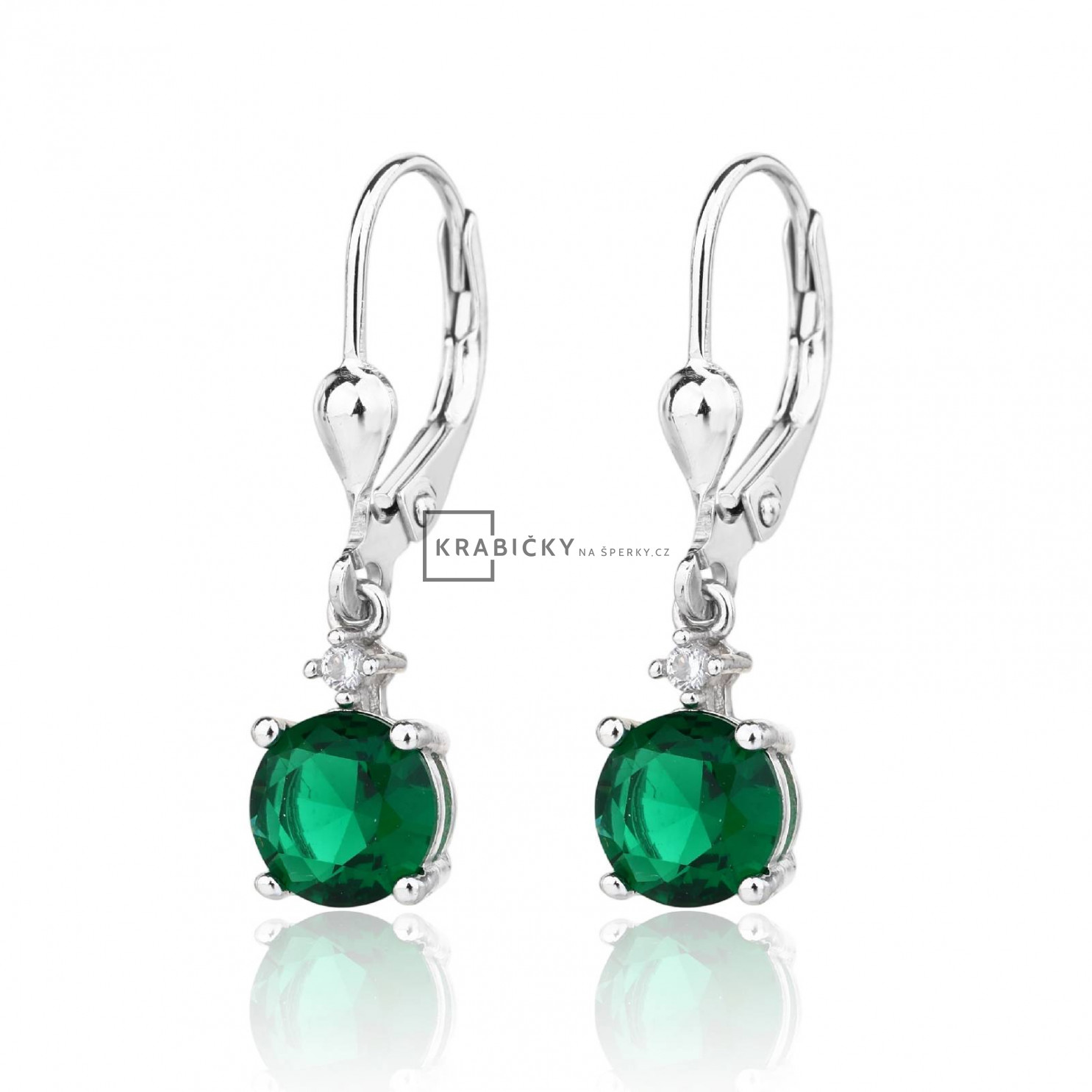 Stříbrné náušnice se zeleným kamenem, klapka, 2,67g, šperk je rhodiován,