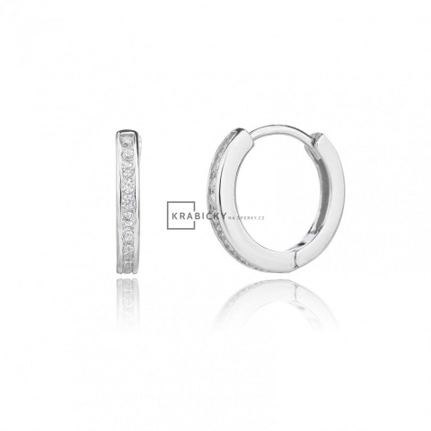 Stříbrné náušnice s bílým zirkonem, kruhy, 2,46 g, šperk je rhodiován,
