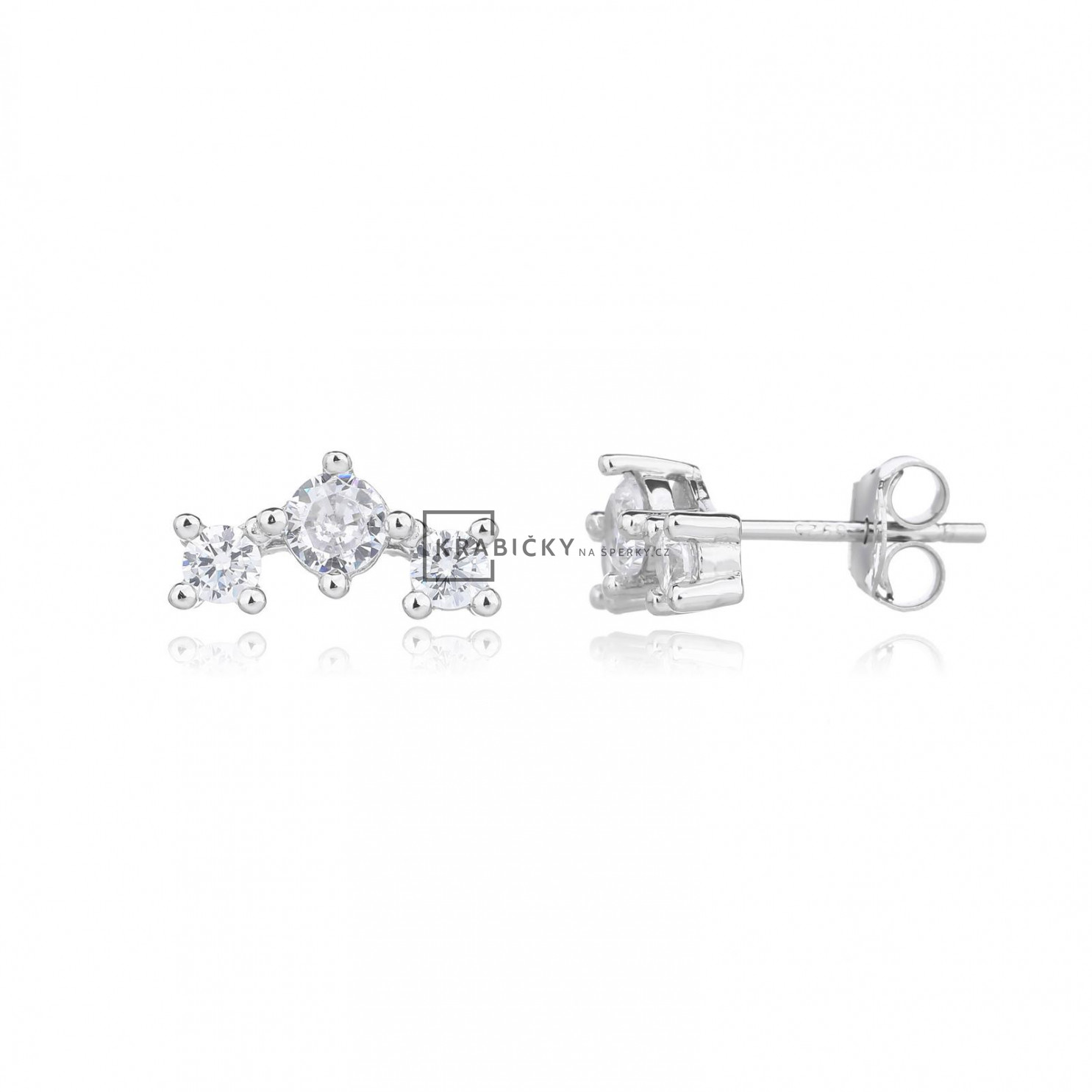 Stříbrné náušnice s bílým zirkonem, puzeta, 1,78 g, šperk je rhodiován,