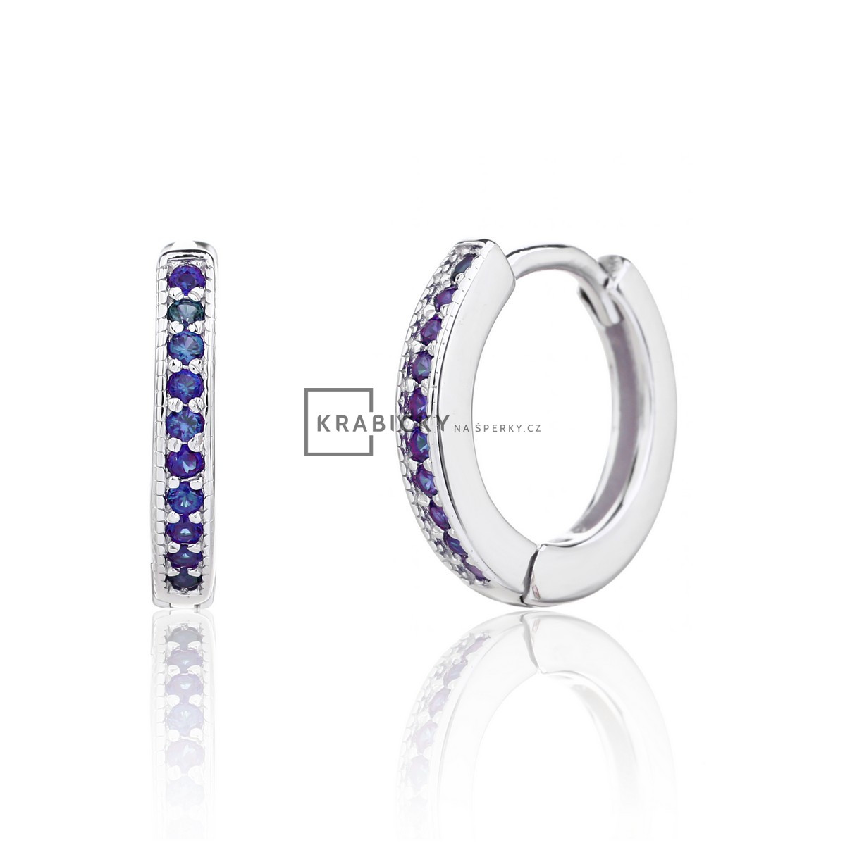Stříbrné náušnice s modrým zirkonem, kruhy, 2,13g, šperk je rhodiován,