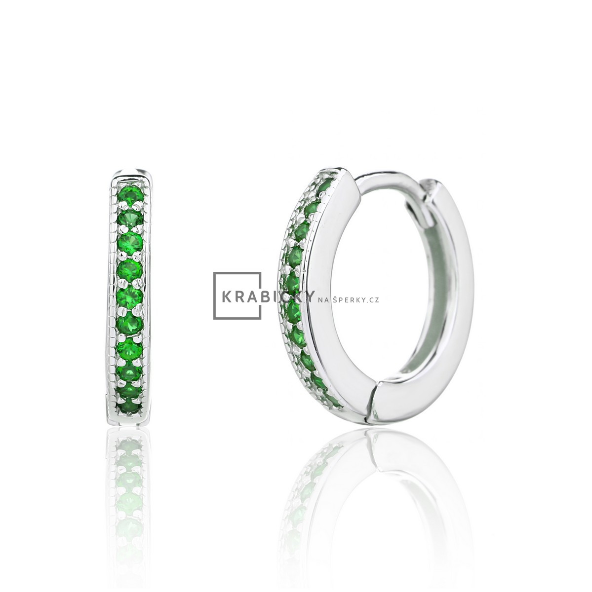 Stříbrné náušnice se zeleným kamenem, kruhy, 2,13g, šperk je rhodiován,