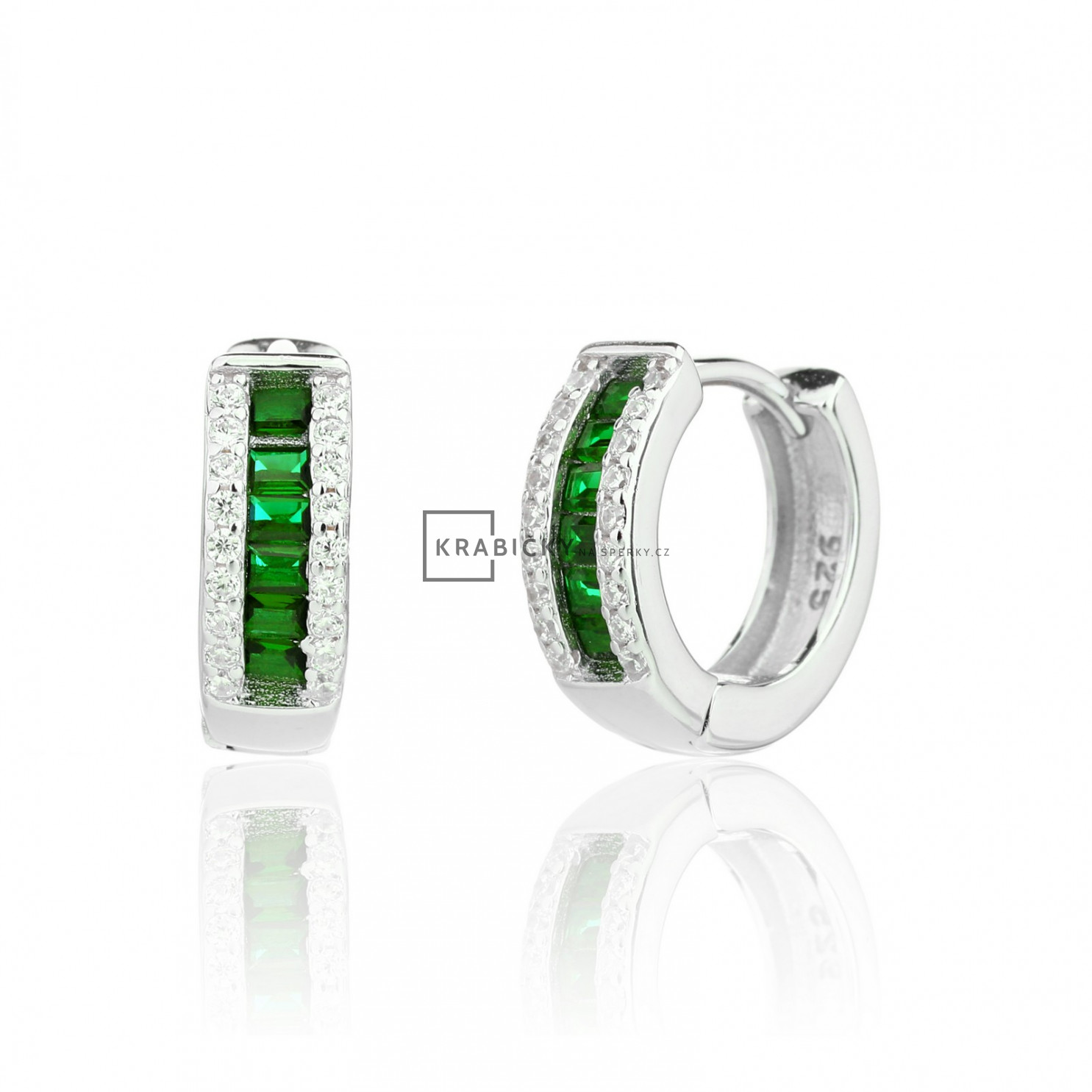 Stříbrné náušnice se zeleným kamenem, kruhy, 3,26g, šperk je rhodiován,