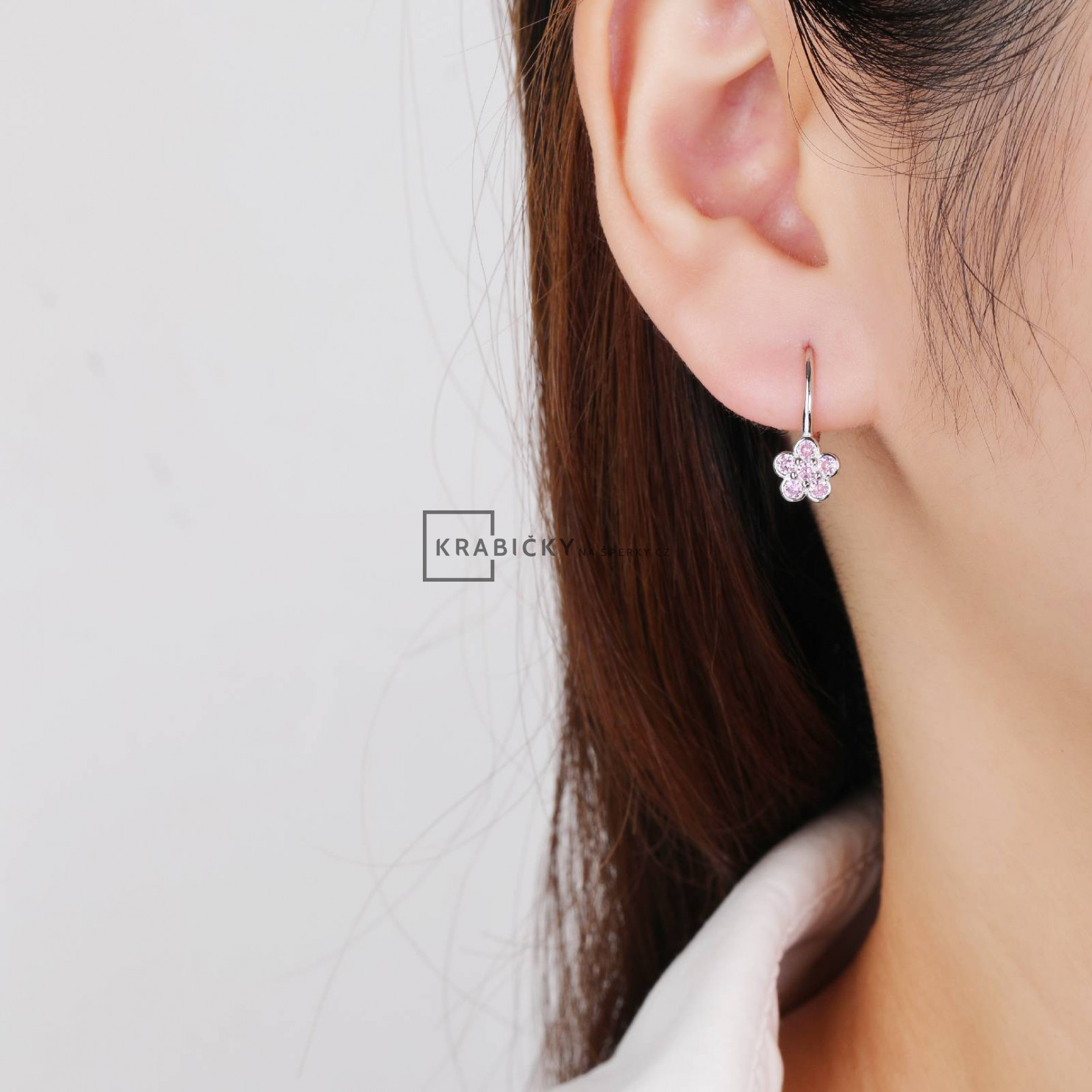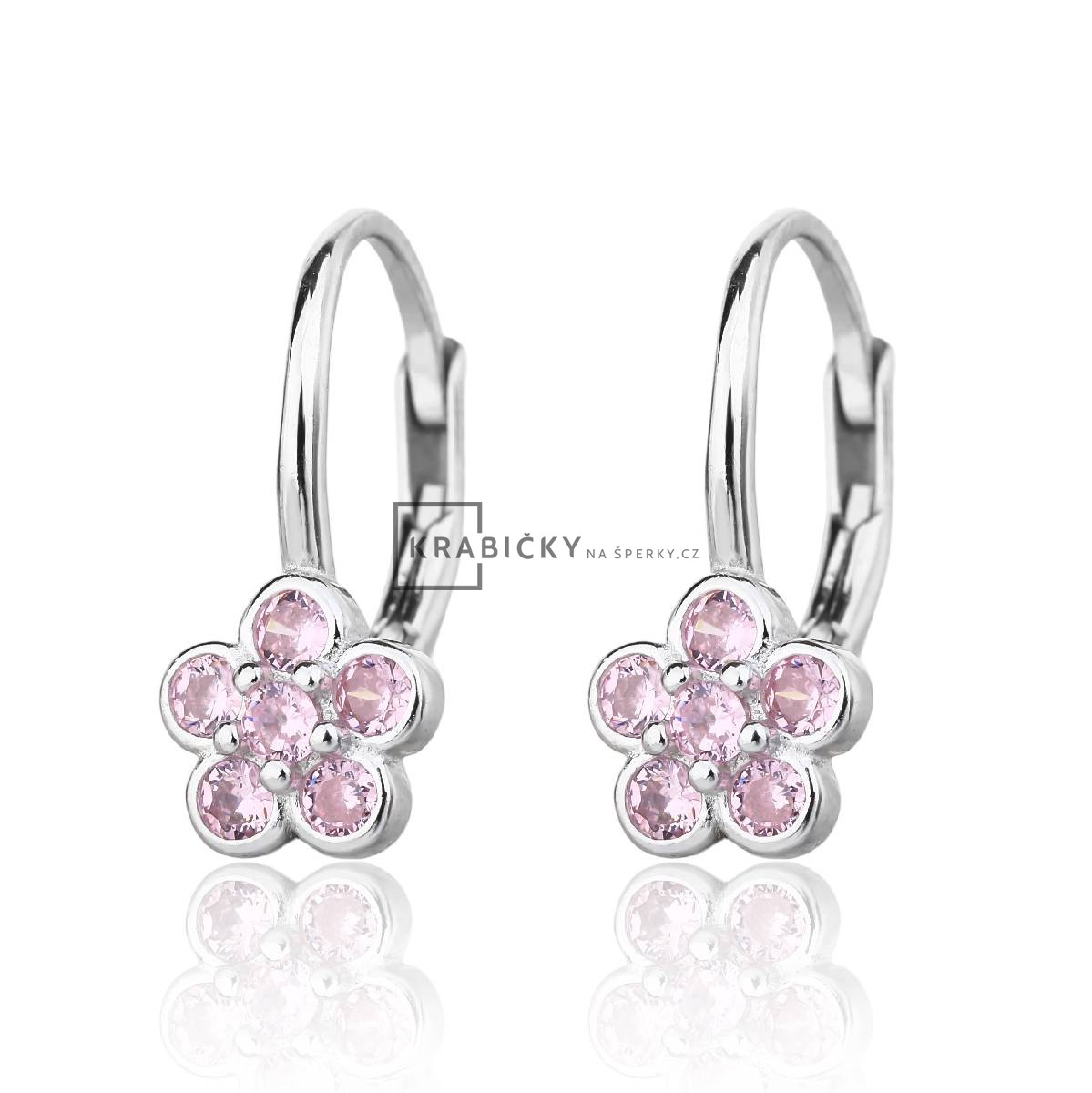 Stříbrné náušnice s růžovým zirkonem, klapka, 1,7g, šperk je rhodiován,