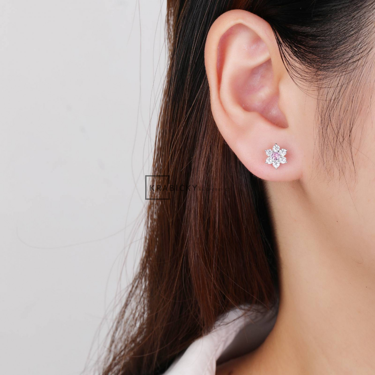 Stříbrné náušnice s růžovým zirkonem 1,52g, šperk je rhodiován,