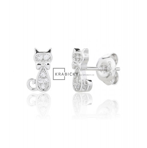 Stříbrné náušnice s bílým zirkonem, puzeta, 2,11g, šperk je rhodiován,