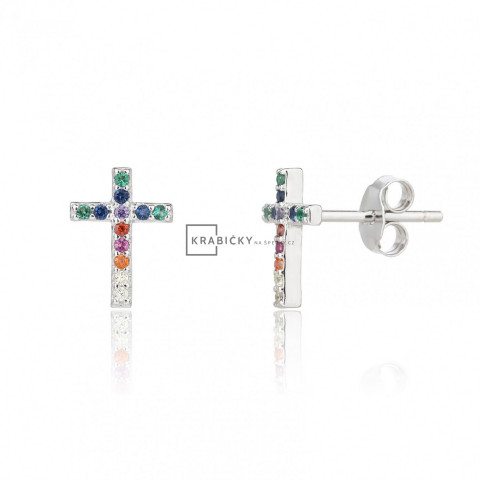 Stříbrné náušnice s barevnými zirkony, puzeta, 0,8g, šperk je rhodiován,