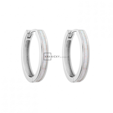 Stříbrné náušnice s opálem, kruhy, 4,39 g