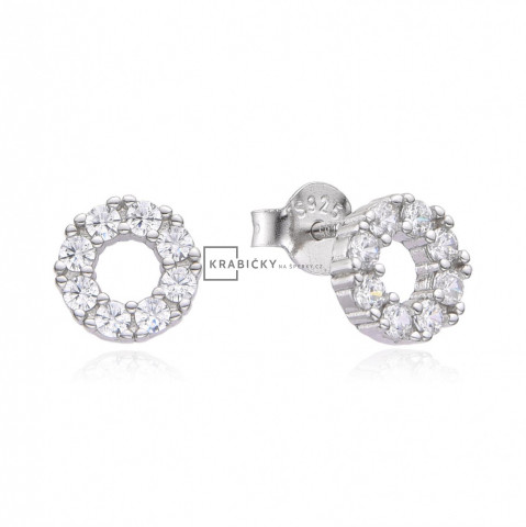 Stříbrné náušnice s bílým zirkonem, kruhy, 1,67 g, šperk je rhodiován,