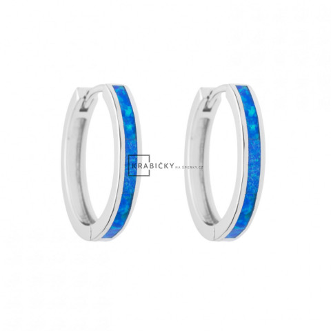 Stříbrné náušnice s opálem, kruhy, 4,56 g, šperk je rhodiován,