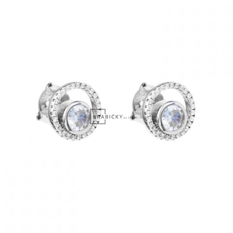 Stříbrné náušnice s bílým kamenem, kruhy, 3,22 g