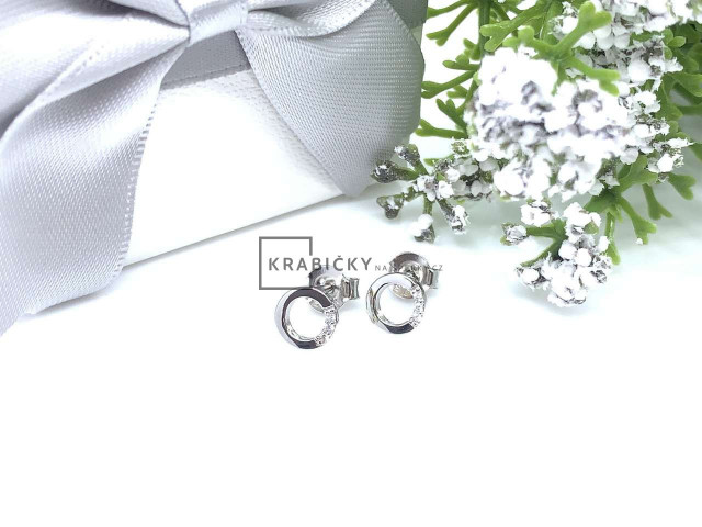 Stříbrné náušnice s bílým kamenem, kruhy, 3,22 g