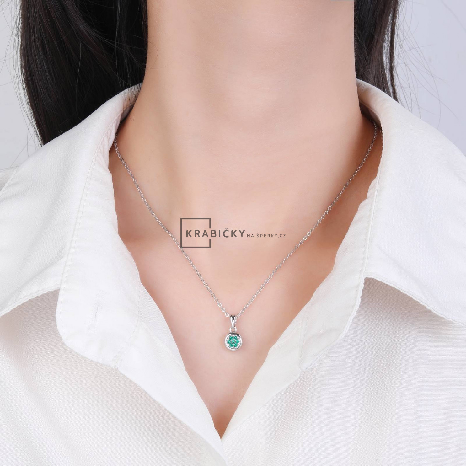 Stříbrný přívěsek se zeleným kamenem 1,24g, šperk je rhodiován,