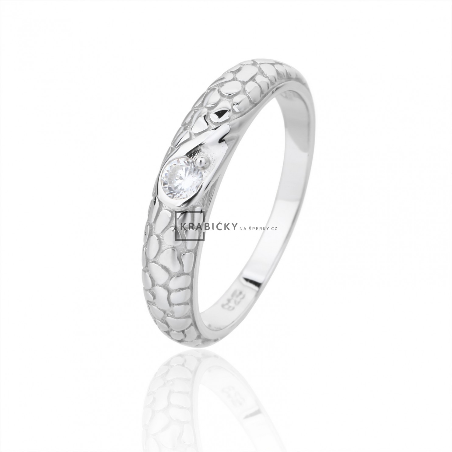 Stříbrný prsten s bílým zirkonem, velikost: 59, 2,1g, šperk je rhodiován,