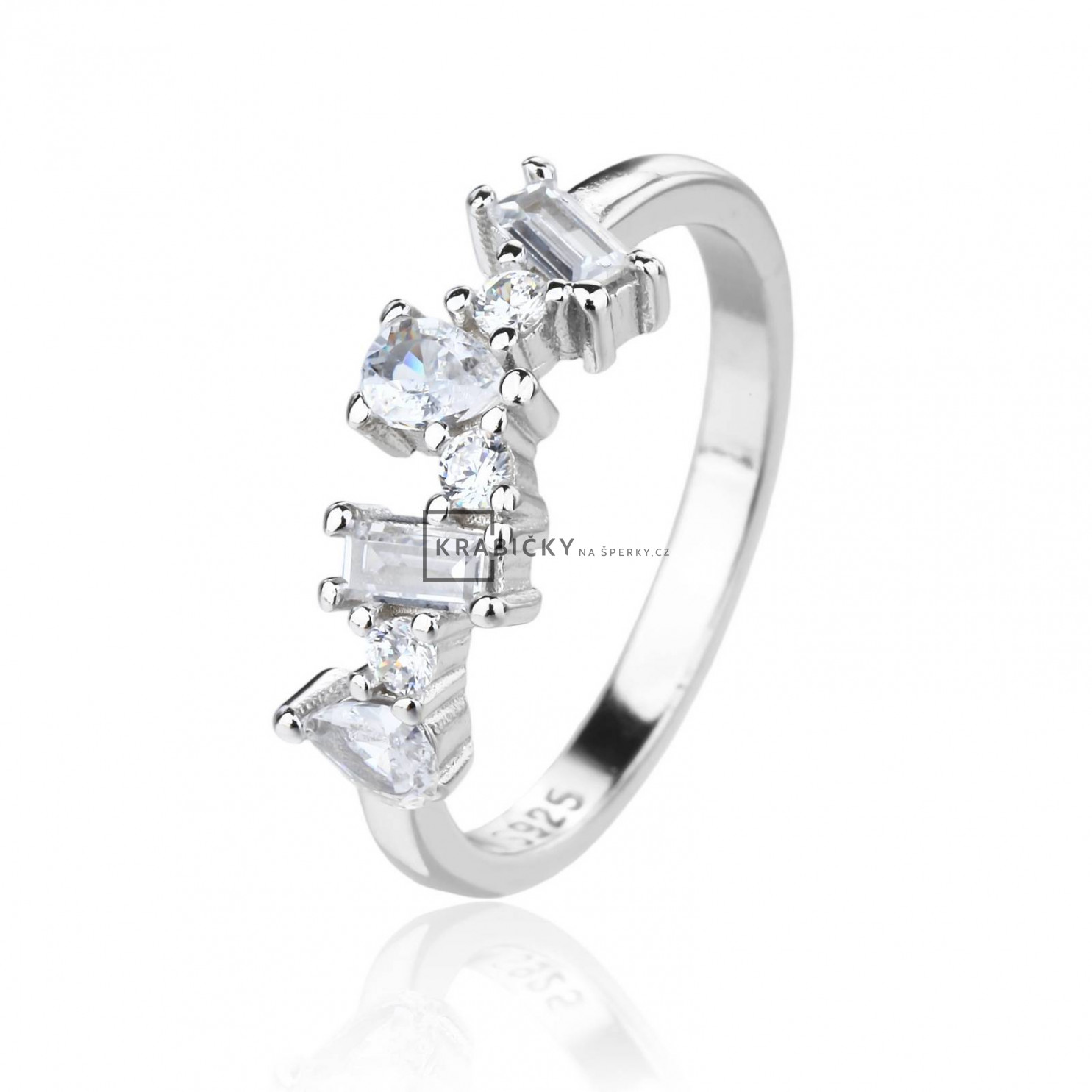 Stříbrný prsten s bílým zirkonem, velikost: 54, 2,35g, šperk je rhodiován,