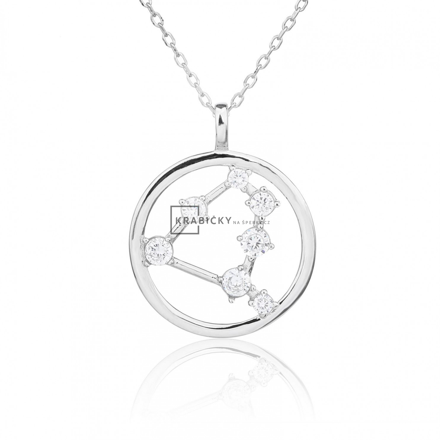 Stříbrný řetízek s přívěskem s bílým zirkonem, anker, 41 - 45 cm, 3 g, šperk je rhodiován,