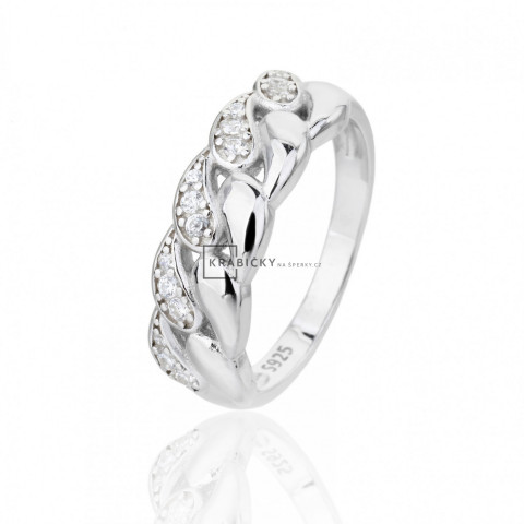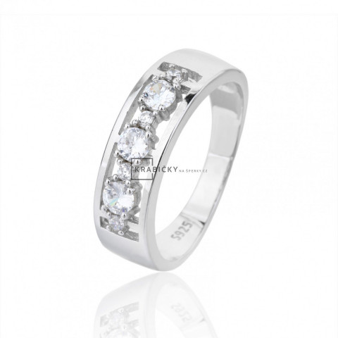 Stříbrný prsten s bílým zirkonem, velikost: 54, 3,2g, šperk je rhodiován,